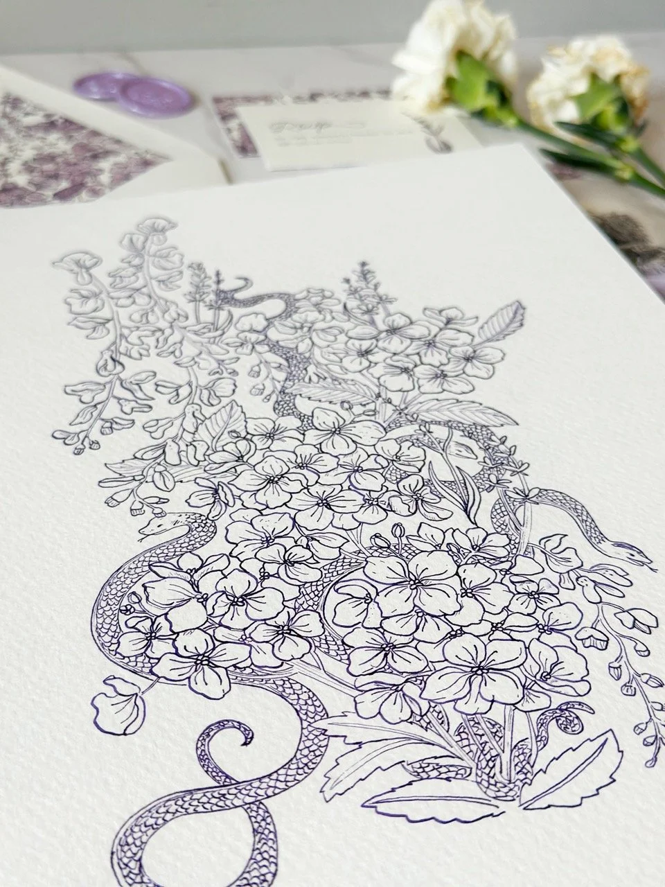 Make your wedding stationery uniquely your story with custom artwork. From including the gorgeous location of your special day to a map of places important to you and your spouse, custom artwork will make your stationery suite as special as your wedding day.